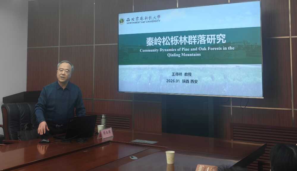 1月26日下午,西北农林科技大学林学院博士生导师王得祥教授应邀来我园进行学术交流,并作了题为《秦岭松栎林群落研究》的学术报告。本次报告会是我园2026年度“花朝讲坛”学术交流系列活动第一期,在翠华园区一楼会议室举行,由召集人杨航博士主持,共37名科研人员参与。